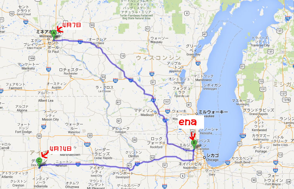 シカゴ校があるアメリカ中西部は、道が平坦で、道路も広く作られており、車で旅行するには非常に快適な場所です。今回は非常に目的も時間も限られていたので、あまり、あちこちをうろうろ出来ませんでしたが、2014年はもっとイリノイ州近辺に冒険に出たいなぁと思っております。