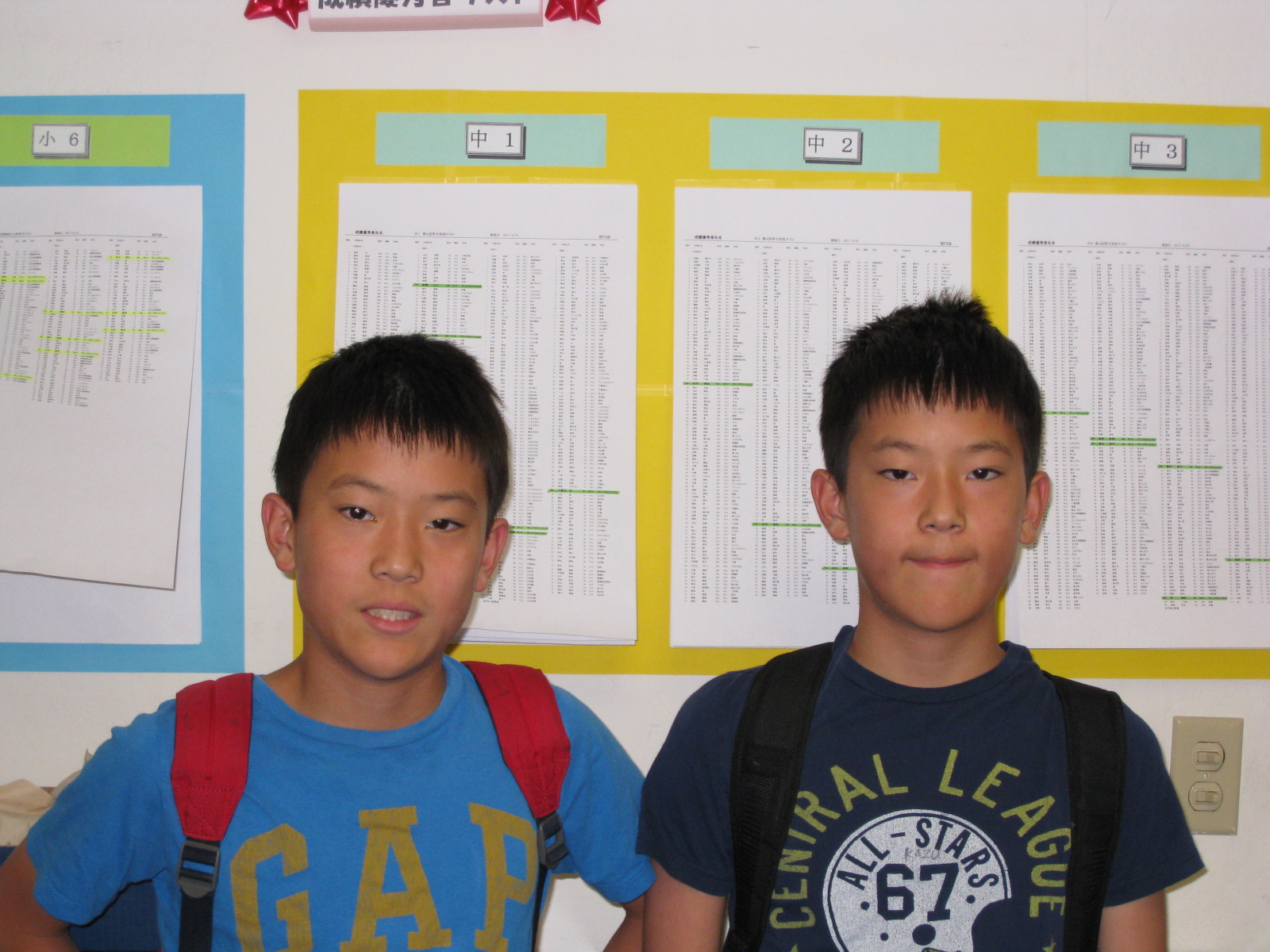 得意の英語では8位だ! 左の冨本君は、今回は数学できちっとランクインを決めています。